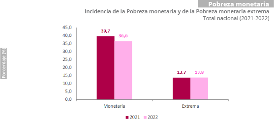 Mientras tanto, en los centros poblados y rurales dispersos la disminución fue de 3,8 puntos porcentuales al pasar del 31,1% en 2021 al 27,3% en 2022.