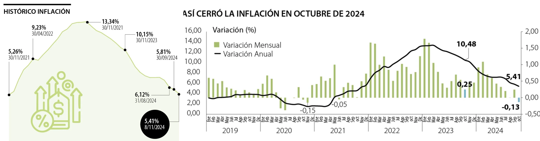 El Dane presentó el dato del Índice de Precios al Consumidor correspondiente para el mes de octubre, que cerró en 5,41%. La “sorpresa” es que en la variación mensual fue de -0,13%, ese balance negativo no se veía desde junio de 2021.