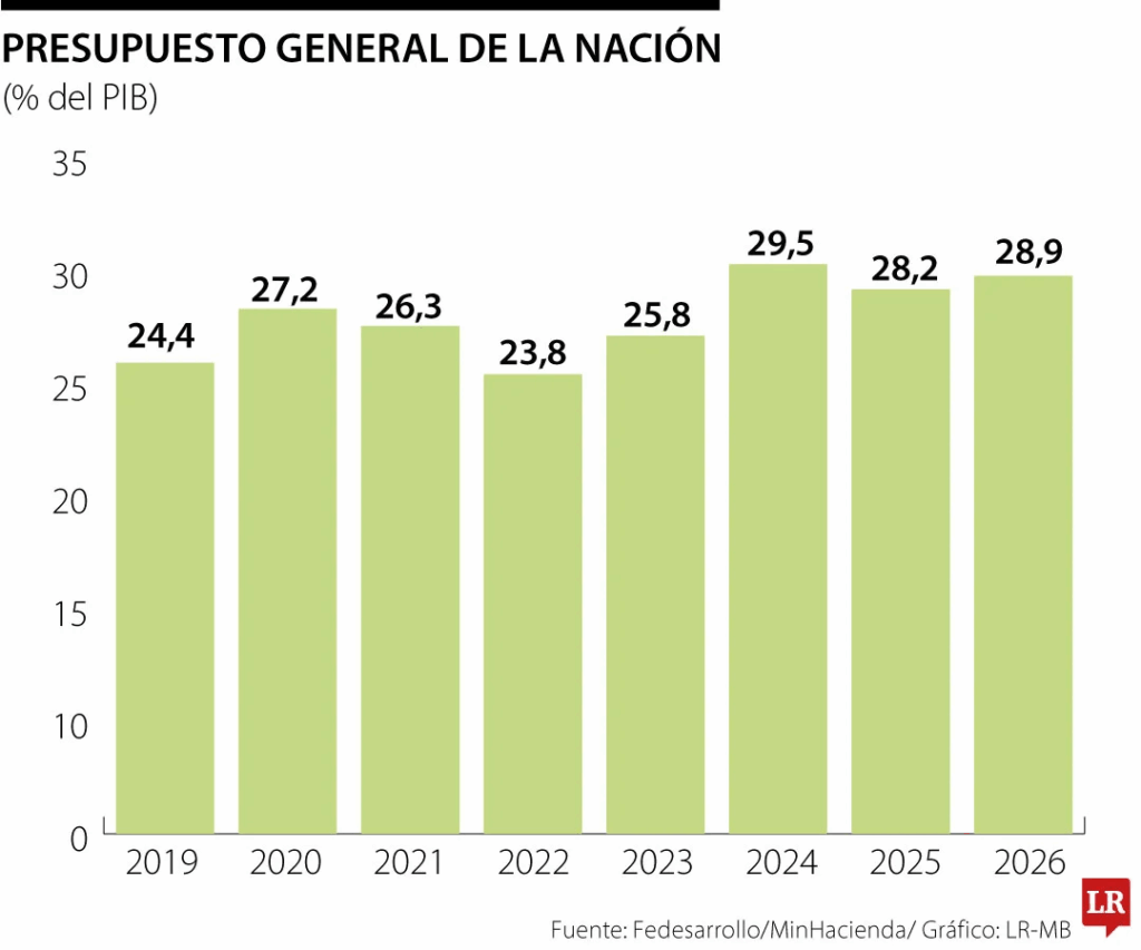 Luego de conocerse la cifra del Presupuesto General de la Nación para 2026, Luis Fernando Mejía, director de Fedesarrollo, advirtió sobre posibles consecuencias. «El presupuesto presentado por el Gobierno para aprobación del Congreso, por $557 billones, equivale a 28,8% del PIB, el segundo más alto en la historia, solo superado por el de 2024 (29,5% del PIB)», explicó Mejía.